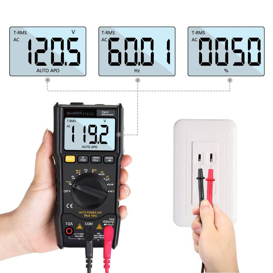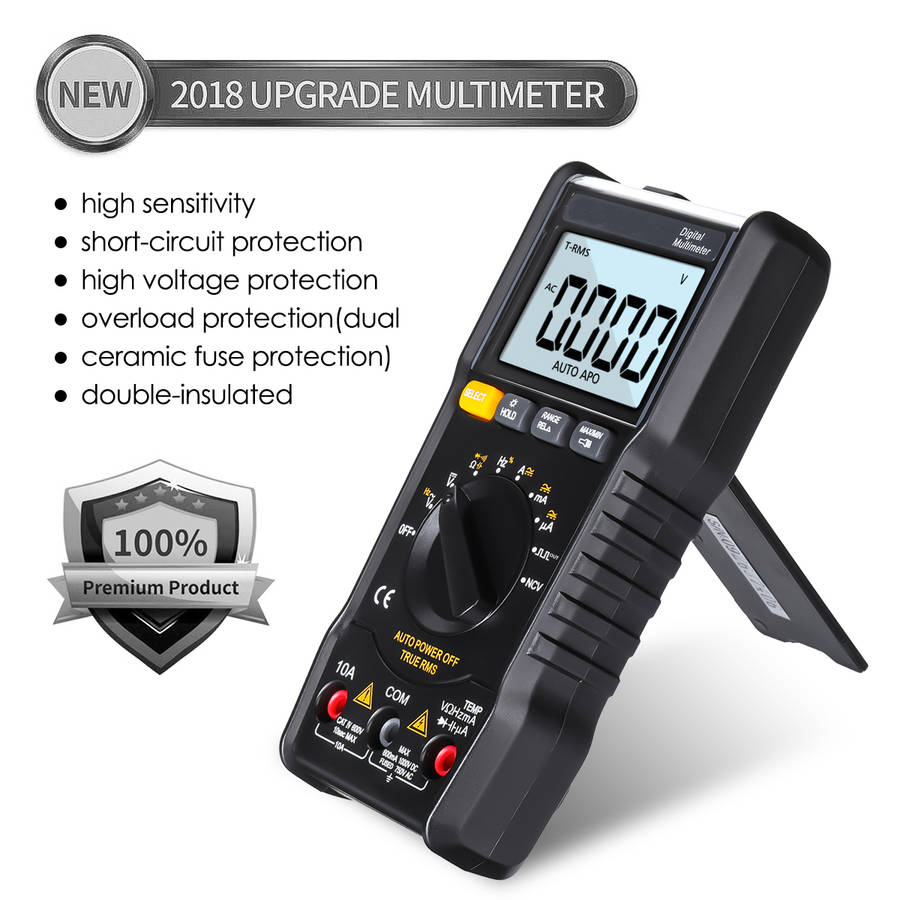 PERFECT MEASURING TOOL- 2-3 times/sec for sampling, quickly solve the safety problems of automotive and household electrical. Data hold and 2.7 inches large backlit LCD display for visibility in dimly light areas (Built-in support stand for hand free use)