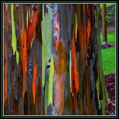 Eucalyptus deglupta Seeds Eucalyptus deglupta commonly known as Rainbow Eucalyptus, Mindanao Gum or Rainbow Gum is a beautiful multi-coloured tree native from the island of Mindanao in the Philippines. It is also found in New Britain, New Guinea, Sulawesi and Seram but it is grown around the world to make paper pulp. It is also found in French Polynesia. The tree is also grown for its decorative trunk. Indeed, it permanently loses its smooth bark in long, thin strips and gradually changes colour as it ages: first a pale green before becoming darker blue, purple, orange and brown hence the common name of the tree: Rainbow Eucalyptus. It can measure up to seventy-five feet high and has white flowers. It supports many types of soils, but prefers to live in the humid tropics. It can withstand freezing temperatures for short periods. The bid amount is for 1 Seed |