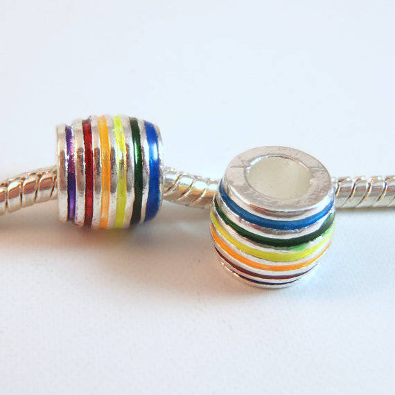 EUROPEAN STYLE - DRUM - SPACER BEADS WITH COLORFUL ENAMEL STRIPES