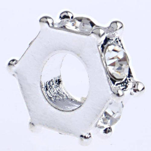 EUROPEAN STYLE - POLYGON - SPACER BEADS - SILVER WITH A GRADE CLEAR RHINESTONES