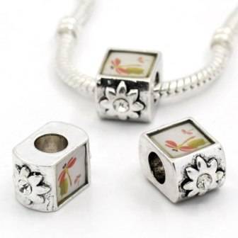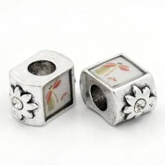 EUROPEAN STYLE - RECTANGLE - ANTIQUE SILVER - DRAGONFLY DECAL - BEADS - 9.50x15.50x8.50mm