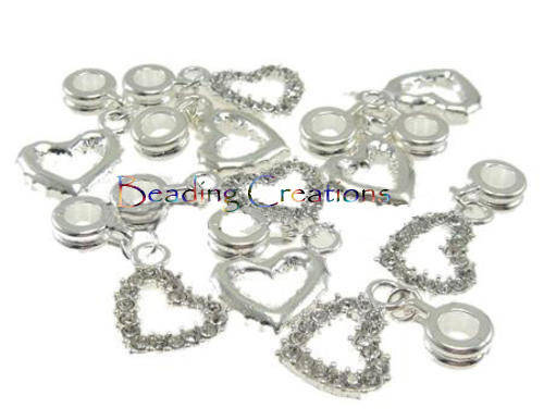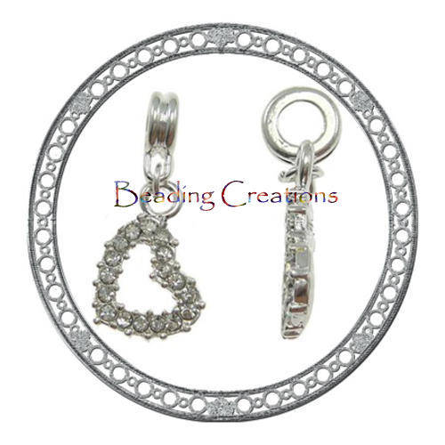 EUROPEAN STYLE - RHINESTONE OPEN HEART - DANGLE CHARMS - CLEAR