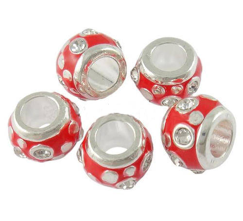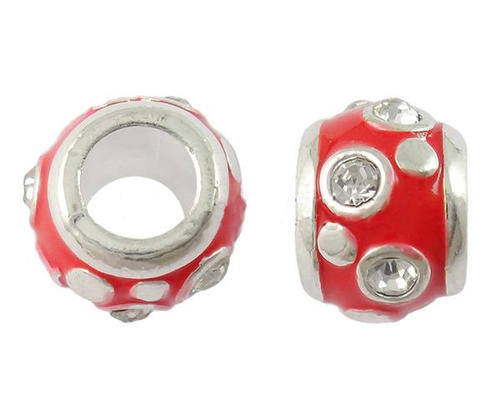 EUROPEAN STYLE - SILVER - DRUM - SPACER BEADS - RED ENAMEL WITH RHINESTONES