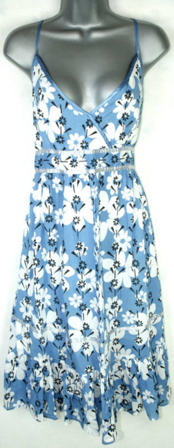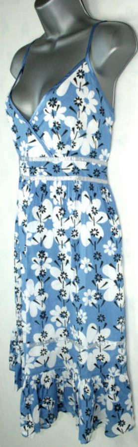 EVIE blue & white flower print, strappy, V-neck, cotton knee length dress