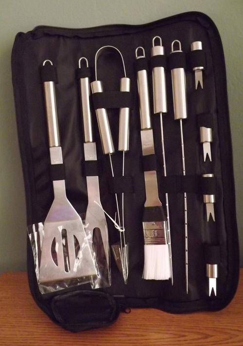 IDEAL GIFT! 10 PIECE SET OF HANDY BRAAI EQUIPMENT. QUALITY STAINLESS STEEL.