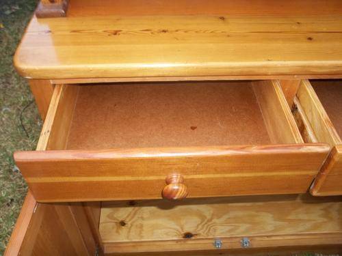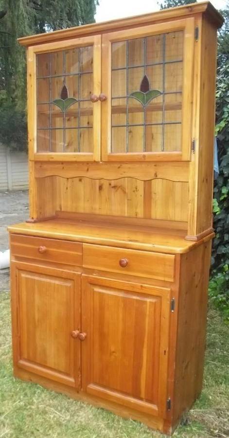 EXCELLENT OREGON SIDE BOARD WITH LEAD GLASS. THIS SIDE BOARD IS IN 100% CONDITION - AS NEW. LOVELY WOOD. SIZE; 188 X 120 X 74,5 CM.