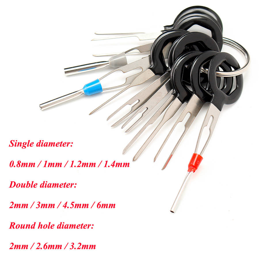 Feature: 1.This kit set is designed to remove car wire terminals without damage. 2.Please don't Pry the terminals with this kit, Just push and pull the terminal pins.