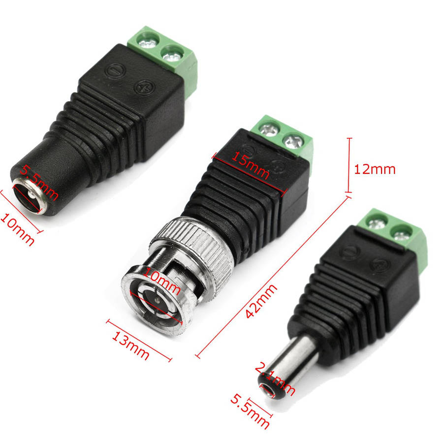 Package Included: 10x DC Male Adapter connectors 10x DC Female Adapter Connectors 20x BNC Male connectors