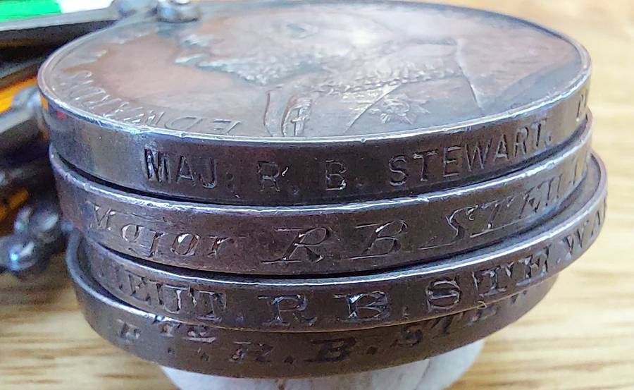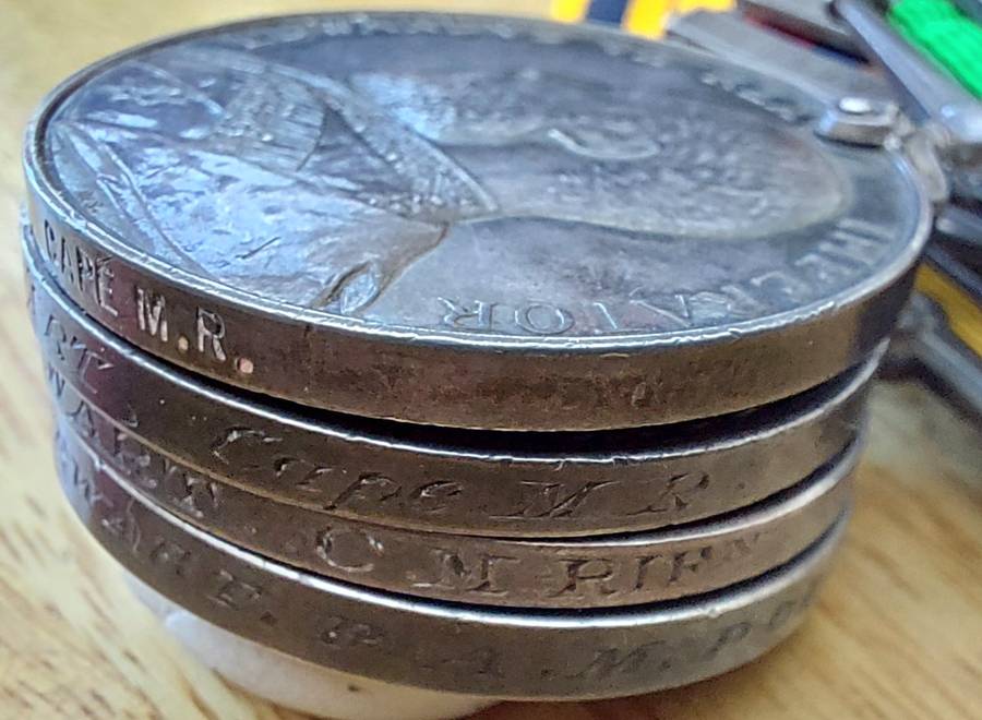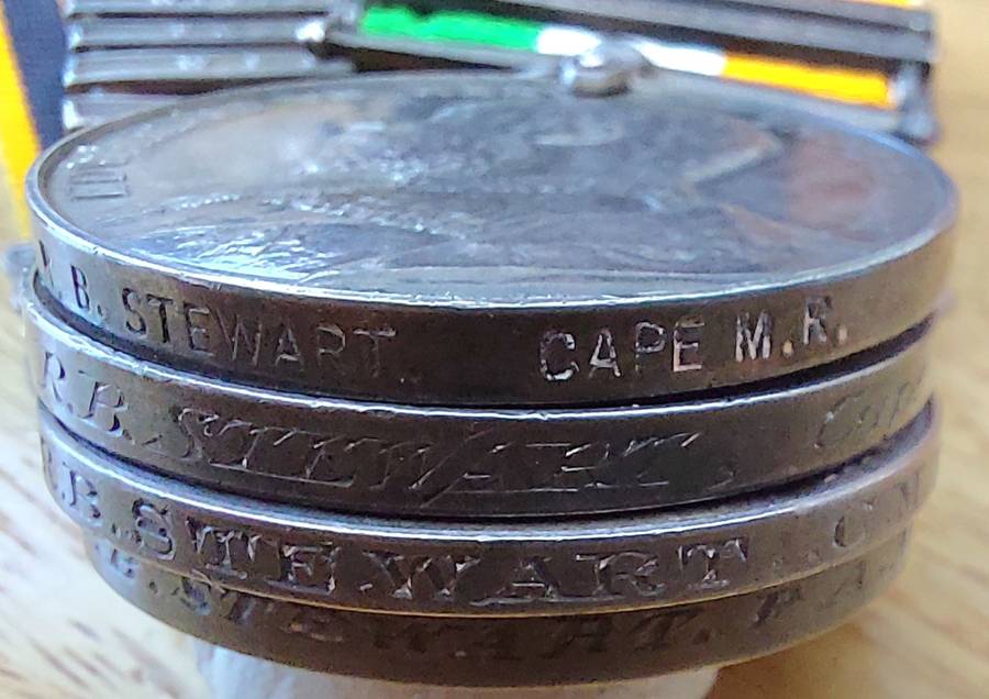 King's South Africa Medal with 2 x Clasps (South Africa 1901, South Africa 1902) to MAJ: R.B. Stewart. CAPE M.R.