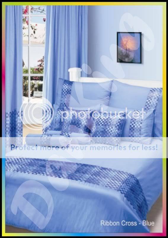 Exclusive Embroided Double or Queen Bed Linen - Ribbon Cross Blue Creation