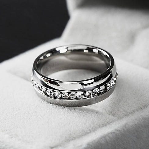 Stainless Steel Channel-Set Eternity Band Ring with stones surrounding the ring. High polish finish and sparkle, truly a classic and unique ring! Comfort Fit for everyday wear. Perfect for him or her.