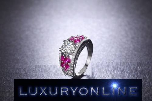 EXCUISITE!! 1.2ct Simulated Diamond With Rubellite Leaves Gold Filled Engagement Ring