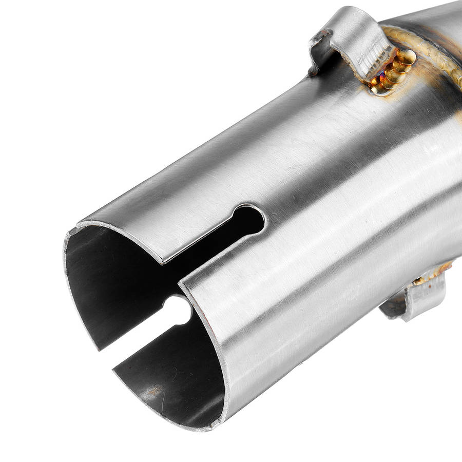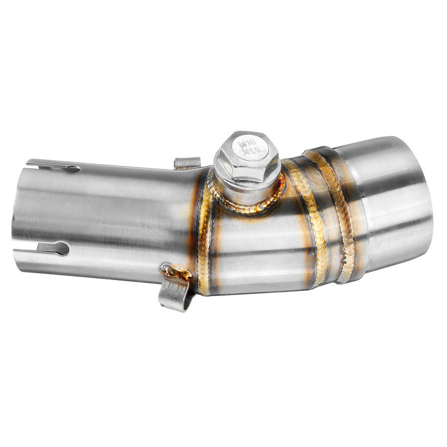 Description: Premium stainless steel construction with added coating process, anti-rust, anti-corrosion and anti-sunburn. A significant part for connecting with your tail pipe, makes your motorcycle to be more aggressive. Helps to obtain maximum output and increases the exhaust performance. Good Performance in reducing the exhaust noise and temperature. Easy to change Tail pipe without welding, nice engagement. A good replacement for your old or broken one. Specification: Material: Stainless Steel Color: Silver Type: Slip On Connection Diameter 1: 5.1cm/2 Connection Diameter 2: 4.3cm/1.7 Length: 14cm/5.5 Fitment: For Kawasaki ER6N All Years Models Package Included: 1 X Mid Pipe 1 X Clamp