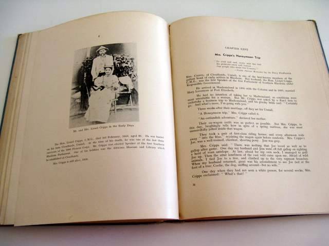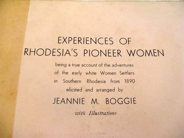 This book was written by Jeannie.M.Boogie the widow of one of Rhodesia's pioneers and a member of the first legislative council.She erected a memorial clock tower in Gwelo in memory of her late husband.