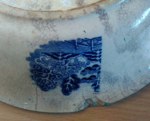 Measures 23 cm by 4 cm. Has age or sea  related cracks and chips .