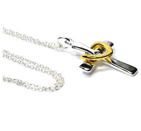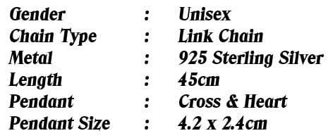 Exquisite 925 Sterling Silver Link Chain Necklace With Cross & Heart Pendant in Gift Box