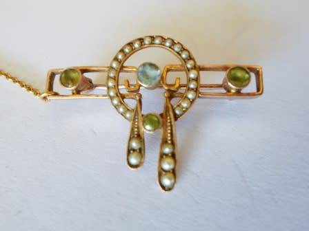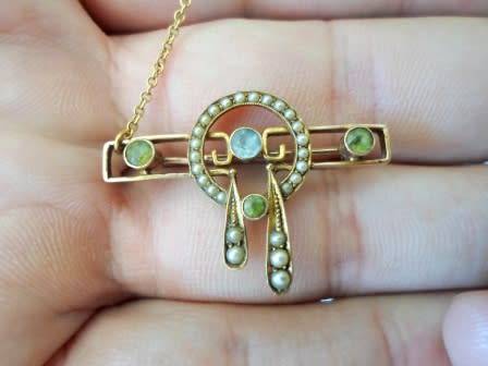 EXQUISITE!! ART NOUVEAU 9ct GOLD PERIDOT, TOPAZ & PEARL BROOCH CIRCA 1905 3,6g WOW!! WOW!