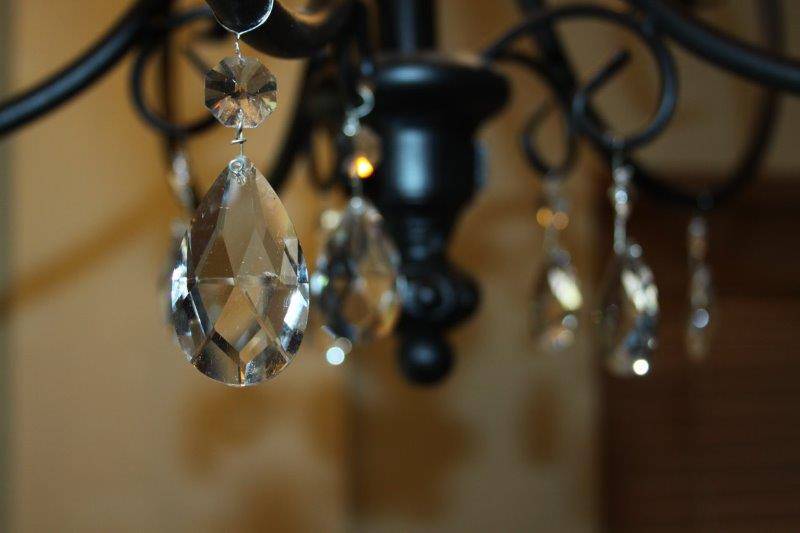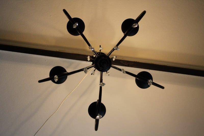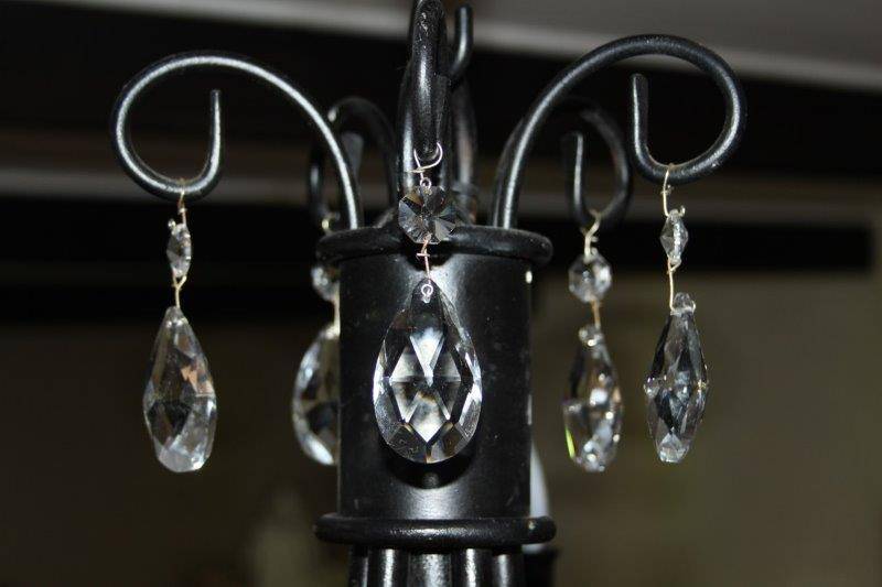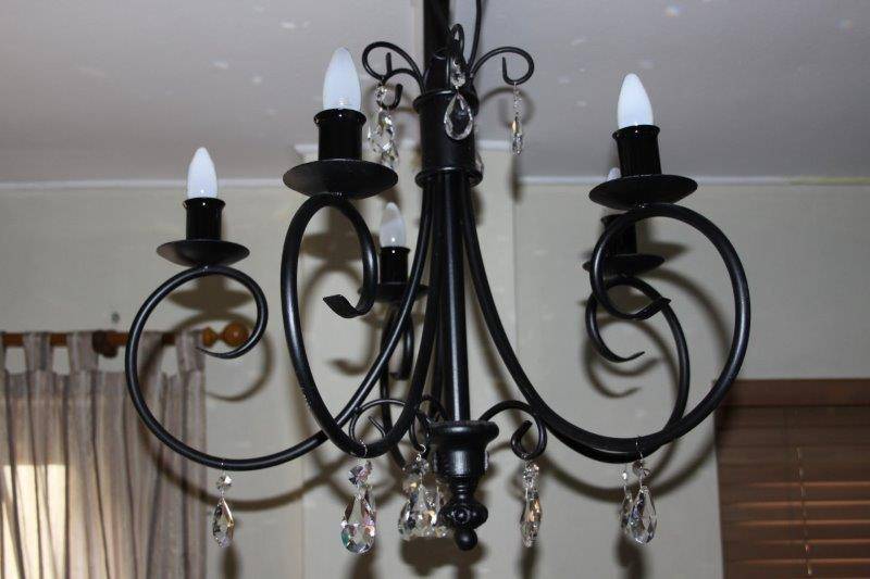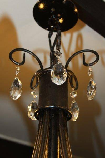 EXQUISITE BLACK ROD-IRON 5-ARM CHANDELIER WITH MAGNIFICENT GENUINE CRYSTALS IN PRISTINE CONDITION!