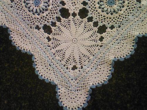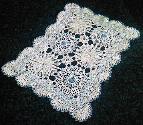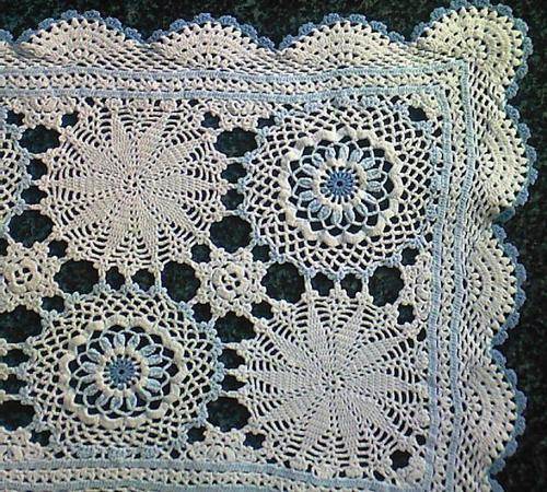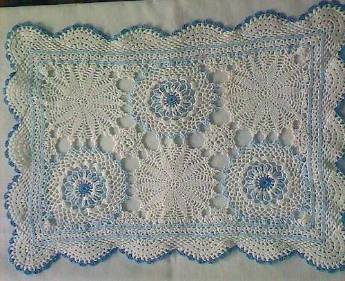 Delicate, exquisite blue and white cotton hand crochet doilie / table mat.