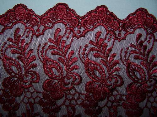 A beautiful piece of burgundy lace material. 160 cm x 75 cm.