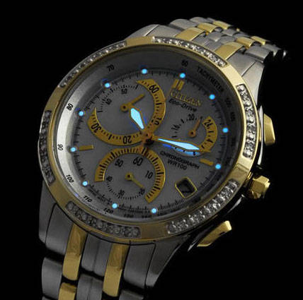 of a 24 diamond encrusted dial and a stainless steel two tone bracelet.