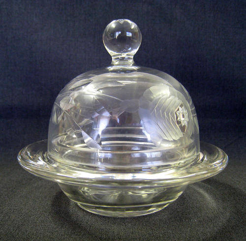 Exquisite Cut-Crystal Etched Butter Dish & Dome Lid