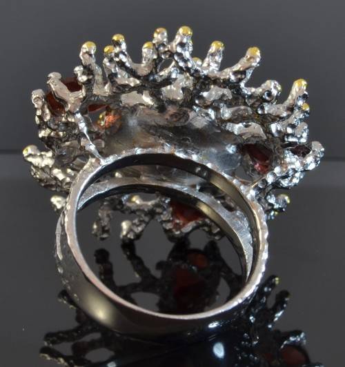 THE RING IS MARKED 925 FOR STERLING SILVER AND HAS A WHITE AND YELLOW GOLD FINISH