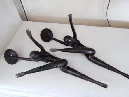 EXQUISITE!! LARGE PAIR OF NUDE BRONZE FIGURAL CANDLE HOLDERS STUNNING WOW!!