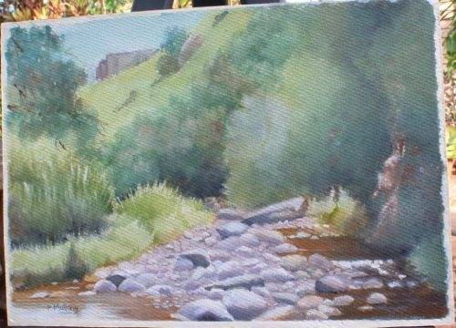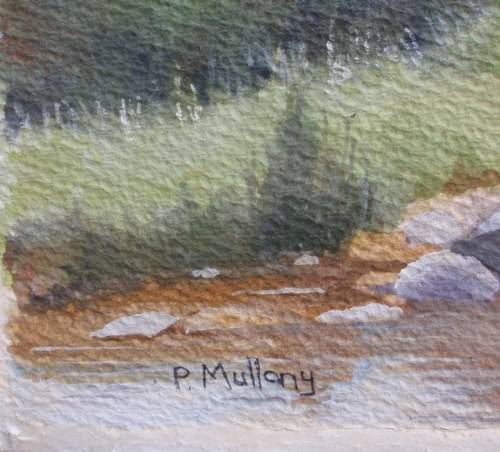 EXQUISITE ORIGINAL WATERCOLOUR by P.MULLANY. ON GOOD QUALITY WATERCOLOUR PAPER - STUCK ONTO THICK CARD. SIZE: 41CM X 29CM. REQUIRES FRAMIING.