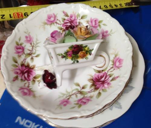 END OF ROYAL ALBERT 4 X SAUCERS PATTERN ROMANCE- LISTING