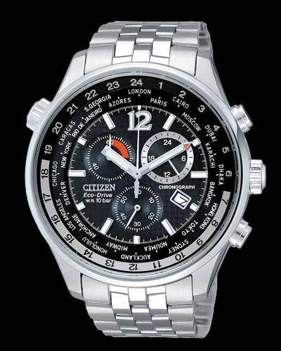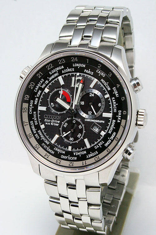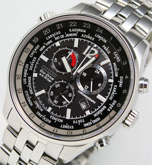 LATEST EDITION 2010 CITIZEN MENS ECO DRIVE DUAL PILOT WORLD TIME CHRONOGRAPH WATCH - AT0360-50EB