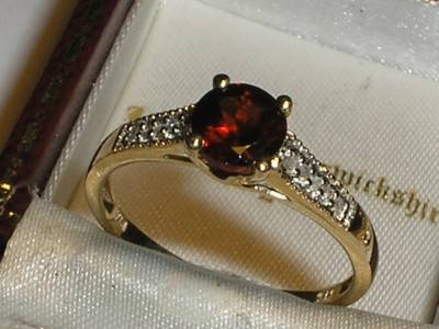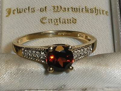 EXQUISITE SOLID 9CT GOLD GARNET & DIAMOND SOLITAIRE RING SIZE L