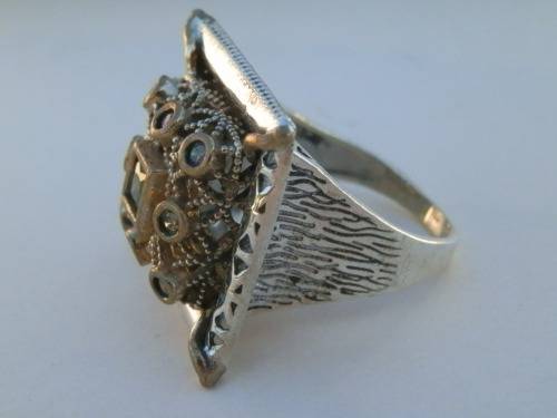 Fabulous sterling silver multi gem ring, marked 925 and in good condition. The size is O / 7.5, top width 21 mm and the weight 8.7 g. Striking design!!
