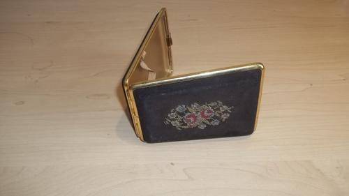 THIS REALLY PRETTY VINTAGE GERMAN LADIES CIGARETTE HOLDER HAS A BEAUTIFUL EMBROIDERED COVER AND WAS DESIGNED TO ACCOMMODATE 10 CIGARETTES WITH FILTERS ON THE END, HENCE THE CIGARETTE HOLDER BEING BROADER ON ONE END THAN THE OTHER. THIS IS REALLY A LOVELY PIECE FOR SOMEONE COLLECTING SMOKING MEMORABILIA.