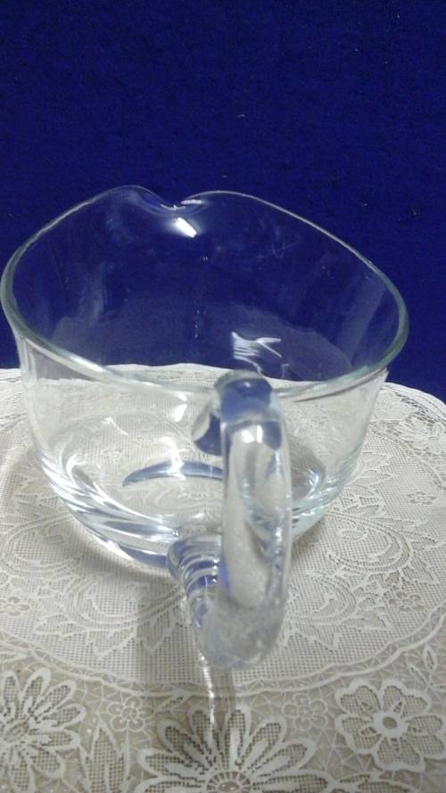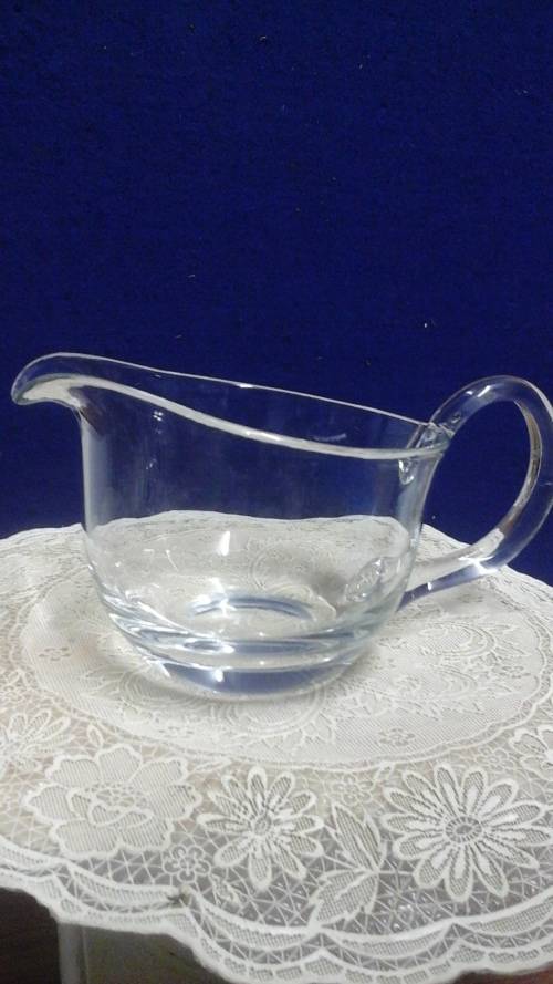 EXQUISITE VINTAGE GLASS GRAVY BOAT.