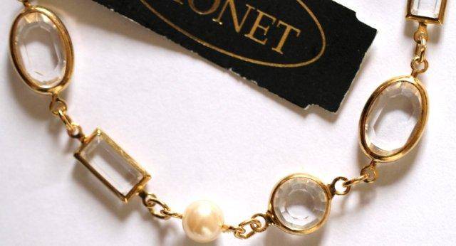 EXQUISITE VINTAGE MONET CRYSTAL AND FAUX PEARL BRACELET - ORIGINAL HANGTAG - UNWORN