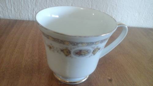 THEY ARE A GORGEOUS WHITE IN COLOR, WITH GOLD EDGING AND HAS A BEAUTIFUL WELL DETAILED AND COLORFUL FLORAL DESIGN.