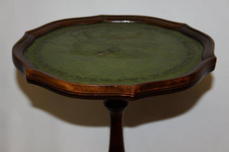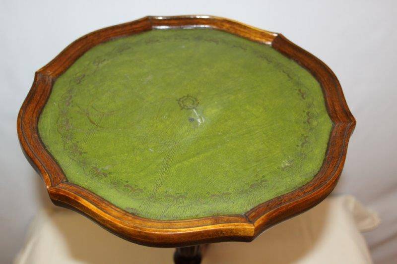 WE ARE OFFERING AN EXQUSITE SOLID OAK LEATHER INLAY OCCASIONAL SIDE TABLE WITH MAGNIFICENT DETAILING!!! THE DETAIL AND FINISHING OF THIS PIECE IS REALLY AWESOME!!! THE CONDITION OF THE TABLE IS EXCELLENT ALTHOUGH IT DOES HAVE SOME VERY MINOR AGE RELATED WEAR. A TRULY BEAUTIFUL PIECE OF FURNITURE WITH TONS OF CHARM AND CHARACTER. THE SIZE OF THE TABLE IS APPROXIMATELY 310mm DIAMETER TOP x 520mm HIGH. PLEASE VIEW THE PICS VERY CAREFULLY FOR MORE DETAIL AND THE GENERAL CONDITION; WHAT YOU SEE IS WHAT YOU GET! POSTAGE IS NOT POSSIBLE SO PLEASE COLLECT IN EDENVALE.