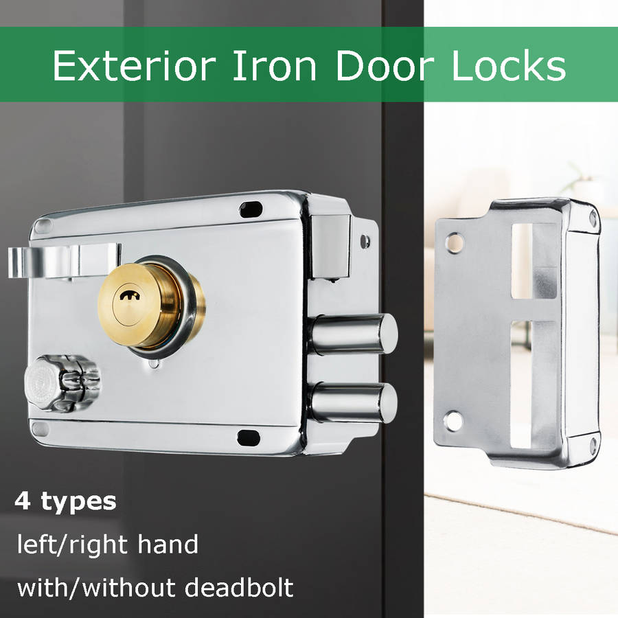 Features : Suitable for household,commercial buildings,residential areas,etc. Exterior Door Lock Security Anti-theft Lock Cross lock. Double zinc lock cylinder design for home security. Made of iron material,which provide rust resistance and durable lifetime. 4 types for selection: Left hand and right hand,with deadbolt and without deadbolt. Contains everything you need to fit an individual door,easy to install. Specification : Material: Iron Surface color: Brushed Nickel Applicable center distance: 60mm Mounting Hole Distance(diameter): 30mm Suitable door thickness: 35-50mm Size: 120x85mm Weight: 550g
