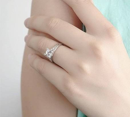 This unique ring is inspired by the Eiffel tower , it features a stunning round cut stone and each prong has a small stone. The design of this ring is extraordinary...