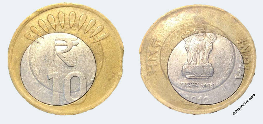 Extremely Rare Double Error 10 rupees coin; misaligned centre and clipped planchet error!!!