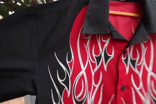 Eye-Catching Silky Black & Red Patterned Shirt for 8 to 9 yr old Boy in good condition