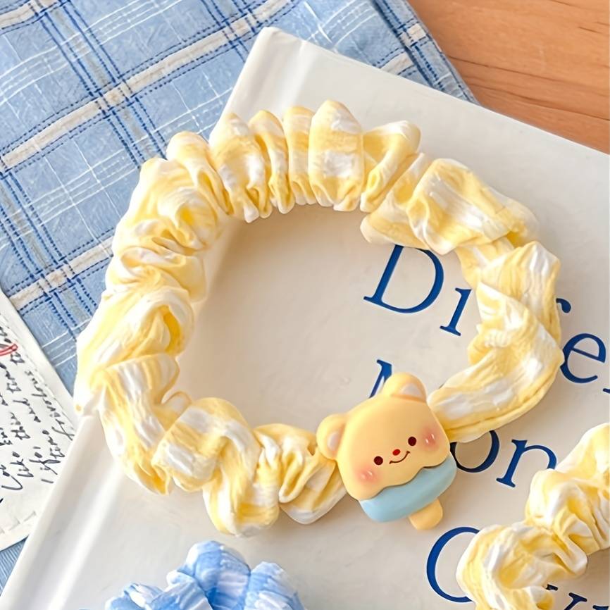 1pc Sweetheart Bear Sausage Hair Tie, High Elastic Fabric Ponytail Holder, Cute Cartoon Animal Hair Accessories for Girls and Students