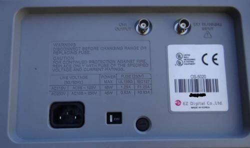 Hardly used. Power cable and clear dust cover included. No test probes.