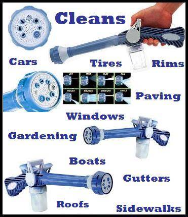 8 Spray settings clean Cars, Tires and Rims, Great for High Windows sidewalks and gardening. Blast away all those dirty jobs like boats, gutters, roofs and wood decking just adjust the spray head for the right job. Chamber can hold both soap and fertilizer that automatic mixer with water. Easy connects to garden hose
