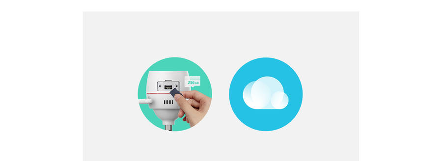 *Local storage cards need to be purchased separately. The availability of EZVIZ CloudPlay services may vary across regions and countries. Please refer to the service page on the EZVIZ App for details.