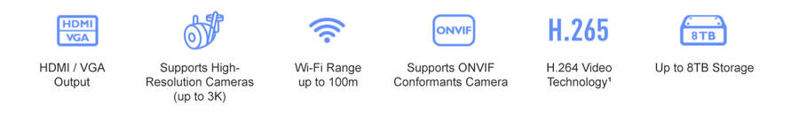 The X5S NVR is designed to manage large-scale videos generated from security needs. In addition to a storage capacity that can be expanded to 8TB², the X5S also receives data and video files from up to 8 connected Wi-Fi cameras³ at the same time.