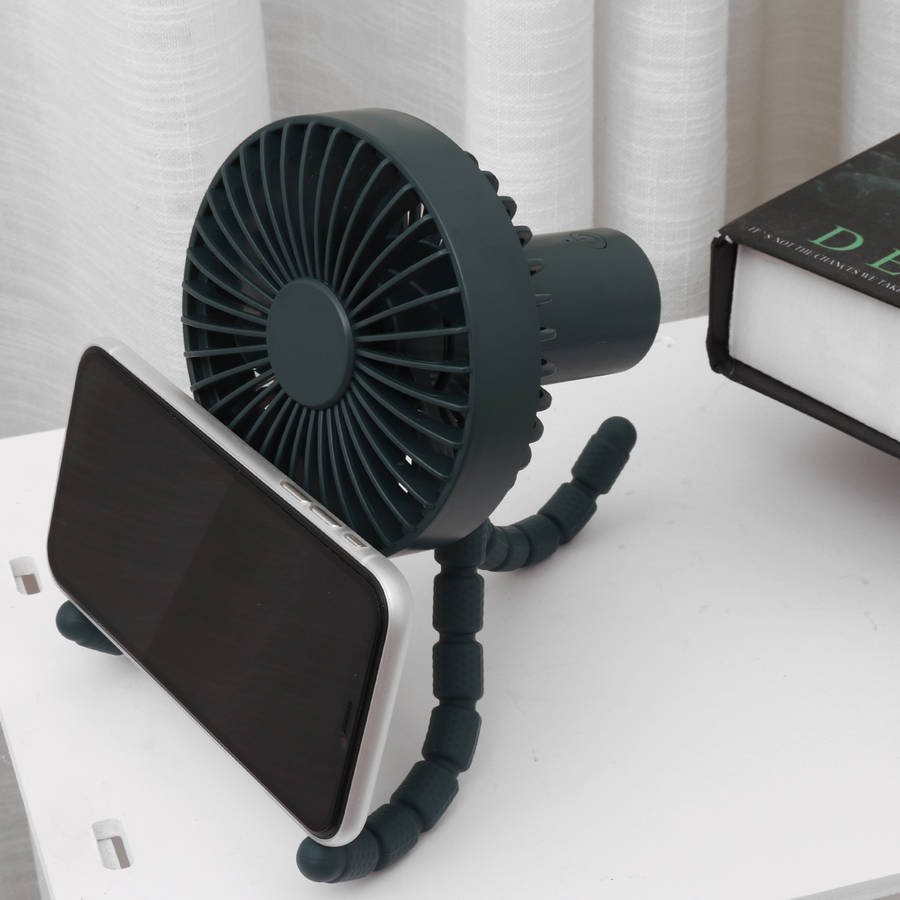 Description: 1.One key press for switching 3 different wind speed. It is designed for all ages. If you plan to using it for your baby, low or medium breeze can provide better care for the baby`s health. 2.Its unique Octopus stand mount is flexible and firm, you can highlight your creativity by set up its various forms: handheld as a portable fan, stand as a desktop fan, hanging or winding as a wall fan, even as a phone holder. Specification: Colour: black/pink/dark green/white Material: plastic Size: 110x227mm Package Contents: 1 * Hand held fan 1 * USB cable