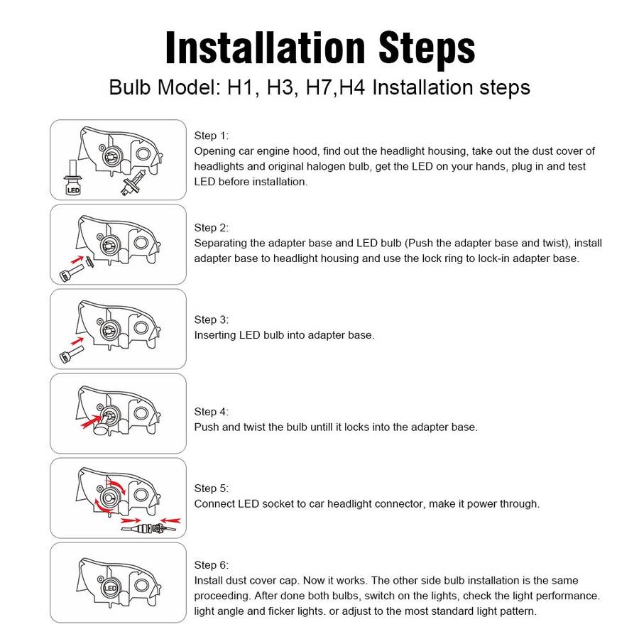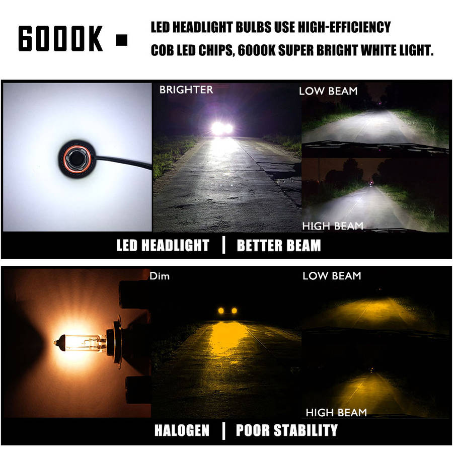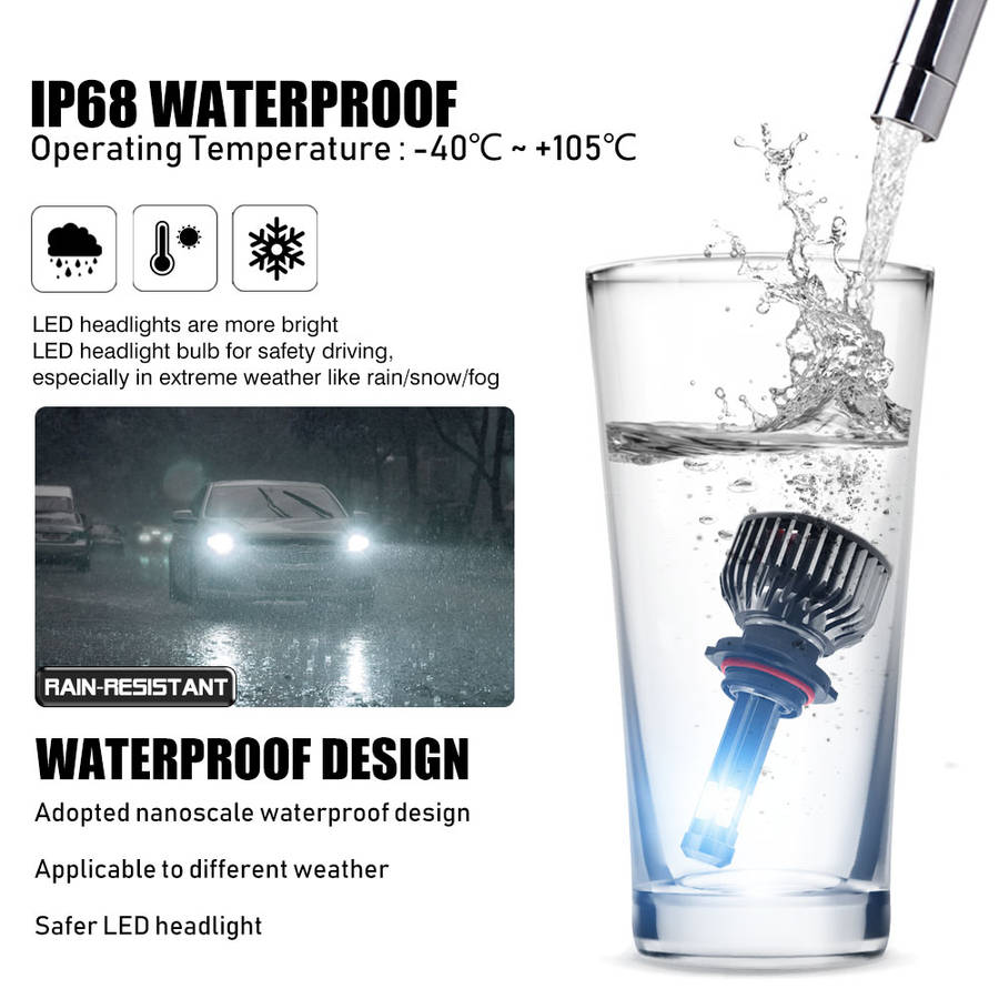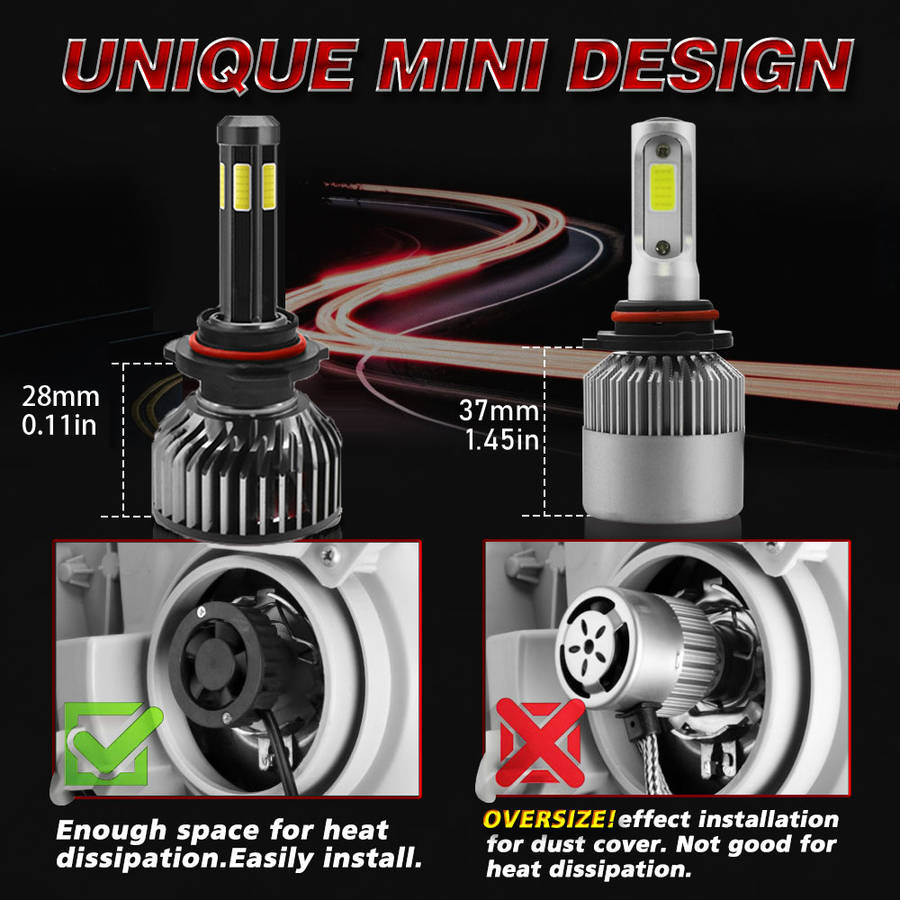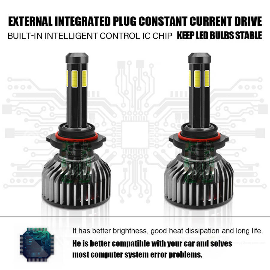 Product Description: Voltage: DC9~32V Power: 55W / pair Luminous flux: 6500LM/pair Chip Type: Efficient COB Material: aluminum 6063 Color temperature: 6000K Protection level: IP68 Stable work: -40~+ 120ᆪC Optional models: H1 / H4 / H7 / H8 / H9 / H11 / 9005/9006/9012 Uses: car headlights / car fog lights Advantages and Features: 1. New six-sided mini integrated design. 2. Mini design. Light weight. No space is convenient for installation. High coverage rate matches more models 3.55W high power. Brighter. Six-sided luminous design, no dead ends. 4. Integrated LED chip, low light decay. Start instantly. 5. A new generation of integrated mini-drive design, stable quality and long life
