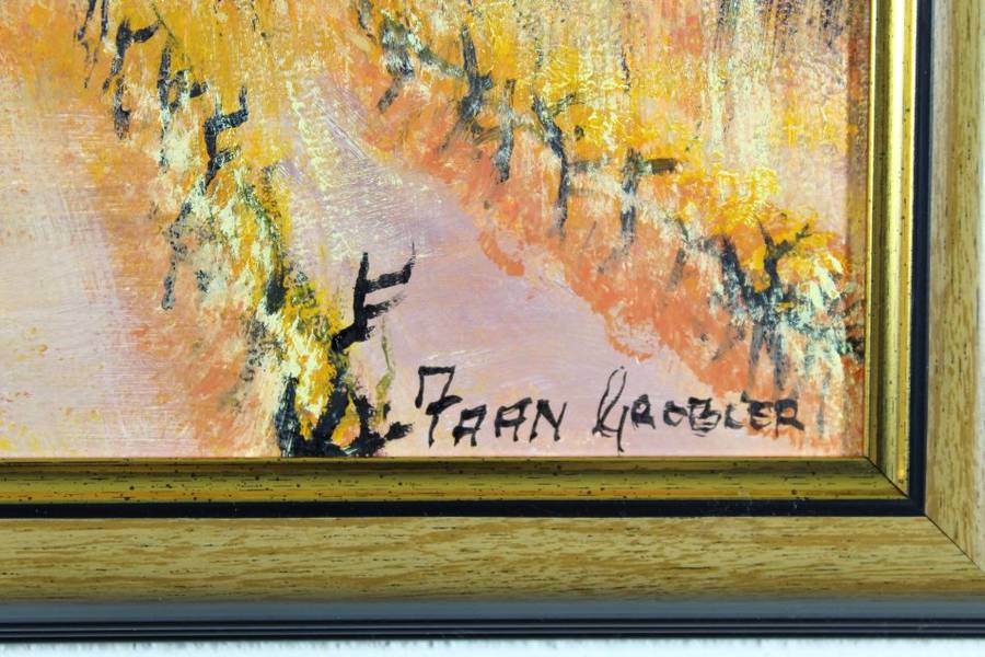 This colorful farm scene is magnificently executed and will captivate you! This beauty measures 39cm x 38cm and the frame measures 45cm x 45cm. Your opportunity to own an investment piece by one of the most talented artist is South Africa, bid now!!